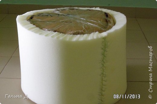Вырезаем поролон и сшиваем. Это мой первый пуф. Когда шила четвёртый- нашла матерчатый скотч. Он сильно упрощает процесс соединения поролона.