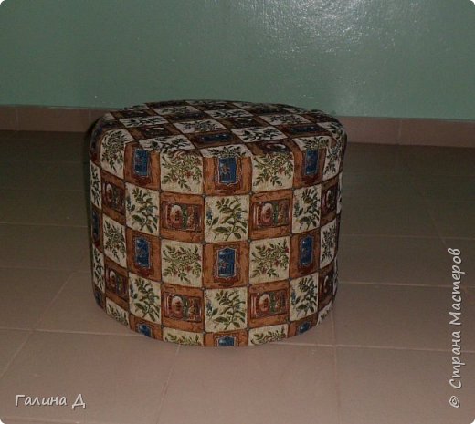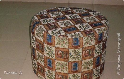 На низ пуфа экономим верхнюю ткань и пришили из покрывала.