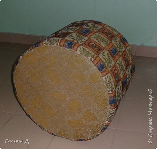 Шьём чехол нижний из чего не жалко. Мой из старых занавесок. На дно тоже пришиваем круг из ткани, но вручную