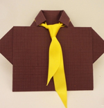 Вот схема бумажной рубашки-оригами, которой можно украсить коробку с подарком или открытку.