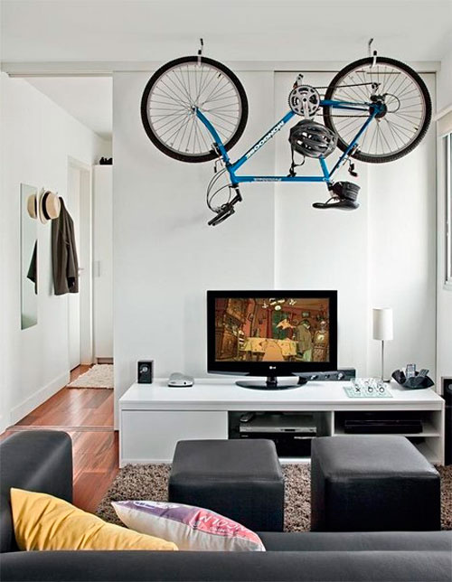 Поэтому дизайнеры задумались о том, как сделать, чтобы велосипед не просто стоял в квартире, занимая все свободное пространство, но и гармонично вписался в интерьер. Предлагаем несколько креативных вариантов.