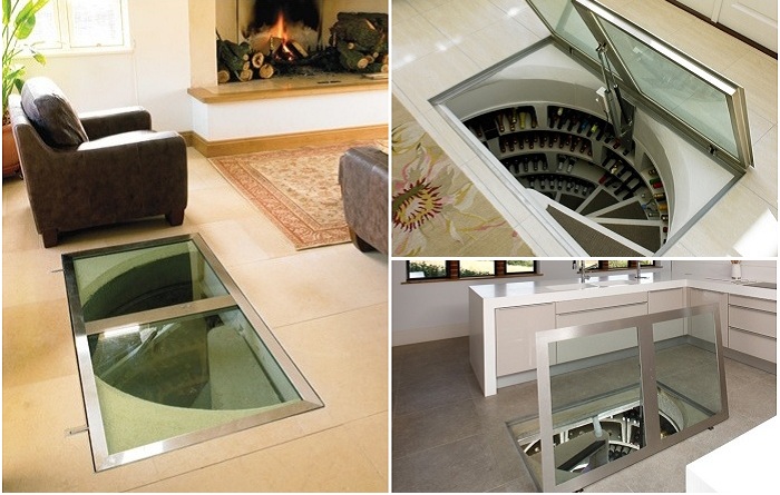 Истинные знатоки вина по достоинству оценят стильные и компактные спиральные погреба для вина, оборудованные прямо в доме (Wine Spiral Cellars). Они очень удобные и практичные, т. к. не занимают много места, и при этом могут вмещать в себя от 700 до 3000 бутылок.