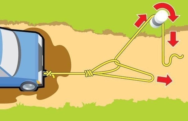Вам стоит изучить этот материал, даже если под рукой нет ни одной забуксовавшей машины. Ведь с помощью этого метода можно также затащить заглохший автомобиль на холм, а то и просто сдвинуть с места тяжелый предмет вроде мертвого слона. Главное, чтобы у вас имелась крепкая длинная веревка, а поблизости росло дерево или фонарный столб.