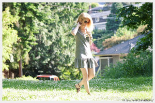 Положите топ платья на стол и на него поместите юбку (наизнанку и вверх ногами). Очень тщательно настройте оборки, чтобы они были ровными и закрепите булавками. Пришейте юбку к футболке. Рекомендуется использовать эластичный шов на швейной машинке, если она у вас есть, или же сделайте очень мелкий шов вручную.