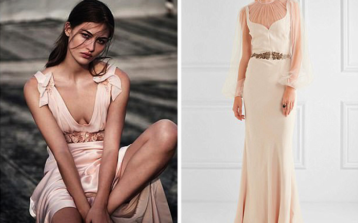 Слева: Впервые фирма Topshop выпустило подвенечное платье в оттенке персикового цвета. Оно вошло в последнюю коллекцию, и хотя еще не поступило в продажу, известно, что все пять свадебных платьев этого лейбла будут стоит в пределах $435 - $990. Справа: Итальянское платье от Alexander McQueen из пыльно-розового шелка обойдется вам в $5 280.