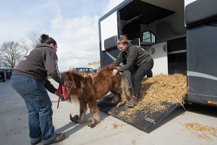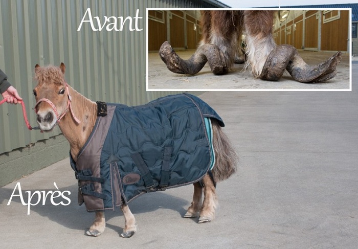 Пару недель назад в бельгийский приют для животных привезли шетлендского пони в ужасно истощенном состоянии. Животное не могло нормально передвигаться. Его копыта не обрезали более десяти лет, поэтому они отросли до невероятных размеров. Бывшему хозяину было абсолютно наплевать на животное, поэтому он содержал его без движения в импровизированном сарае.