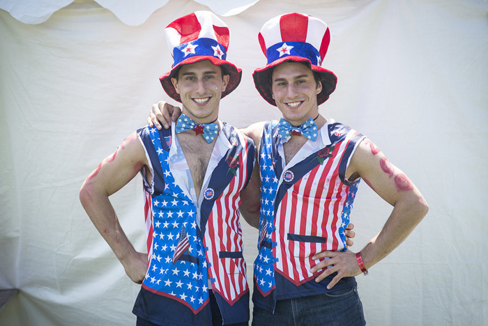 Линда и Лаура Меллор в красно-бело-голубых нарядах.