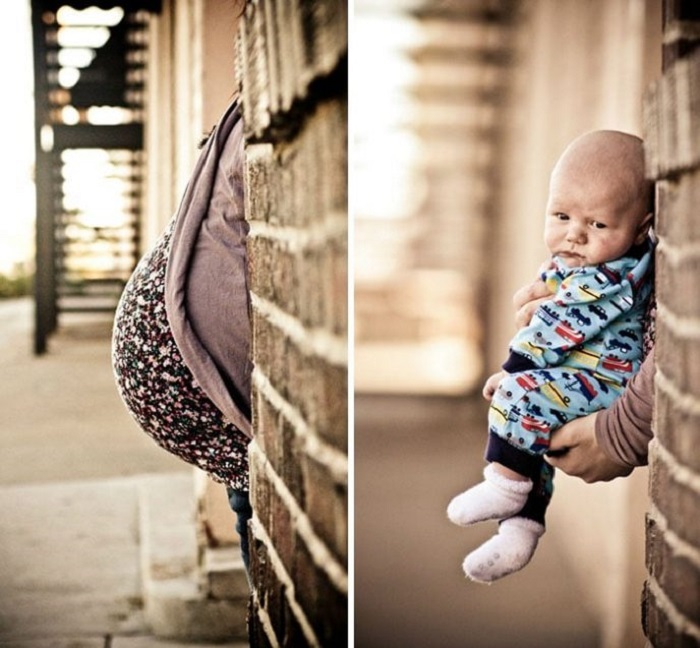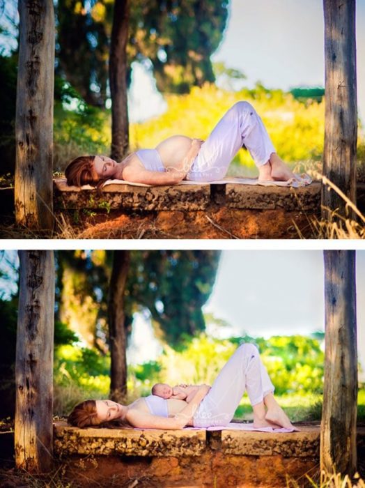 Очень милая идея для фотографий беременной и рожденного младенца.