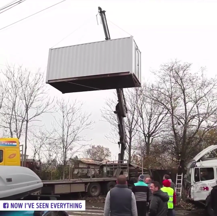 Контейнер поставили на расчищенную площадку прямо рядом со старой лачугой деда, так что тому не пришлось никуда переезжать.