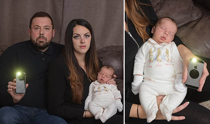 На самом деле мама Клейр был вынуждена включить функцию фонаря на своем айфоне, потому что в родильном отделении внезапно исчезло все электричество - и произошло это аккуратно тогда, когда у Клейр собственно начались роды. В полной темноте, лишь в свете от двух айфонов - мужа и мамы Клейр, появилась на свет маленькая Бель. Все так же в таком же освещении акушеркам пришлось перерезать пуповину.