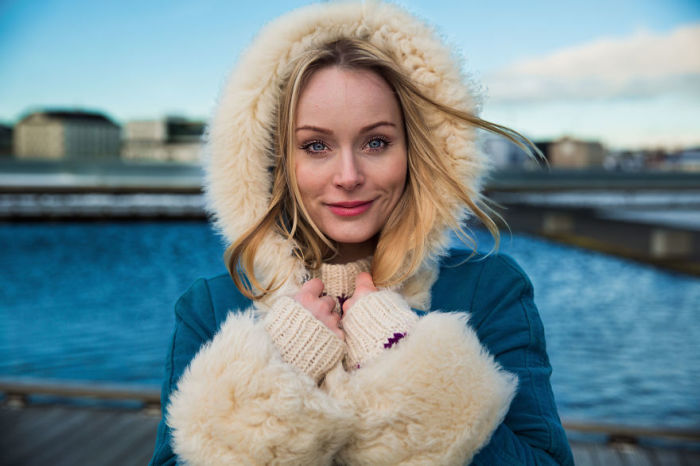 Очаровательная исландская девушка - блондинка с голубыми глазами.