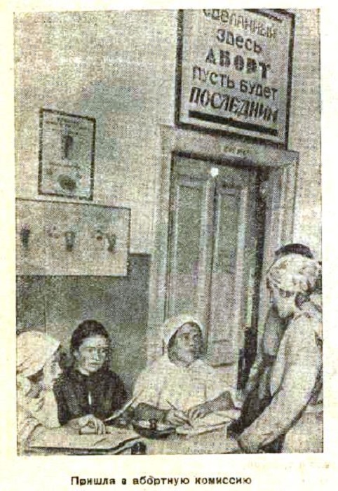 Вскоре власти поняли, что ситуация постепенно выходит из-под контроля, и создали специальные абортные комиссии. Довольно любопытна выдержка из статьи в газете «Красное знамя» 1927 года: «Представляют значительный общественный интерес цифры, касающиеся работы абортной комиссии. Всех случаев обращения в комиссию с просьбой разрешить производство аборта за 25-26г. отмечено 630. Из этого числа 77 отказались под влиянием убеждений членов комиссии, 12 заявительницам было отказано за недостаточностью мотивов и в 540 случаях были даны разрешения на производство абортов. С внебольничными абортами поступило в лечебные учреждения 376 женщин».