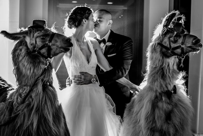 Для тех, кто хочет организовать по-настоящему незабываемую свадьбу, или тех, кто просто не очень любит людей, а предпочел бы окружить себя вместо этого дружелюбными животными, одна компания организовала эксклюзивную услугу - можно арендовать специально обученных лам, которые профи в позировании на фотографии, и уже "собаку съели" на многочисленных торжественных мероприятиях.