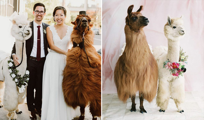 Центр Mtn Peaks Therapy Llamas & Alpacas, предоставляющий услуги по терапии с помощью общения с животными, предлагает нынче особую услугу: четыре специально обученные ламы готовы стать свидетелями на свадьбе, позировать на фотографиях и даже всячески развлечь гостей. Пока что такая услуг доступна только жителям ряда штатов Америки, но учитывая ее популярность, не исключено, что она найдет клиентов и на другом континенте.