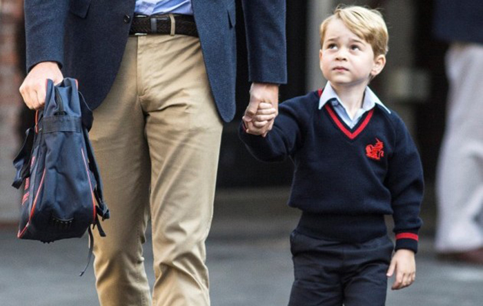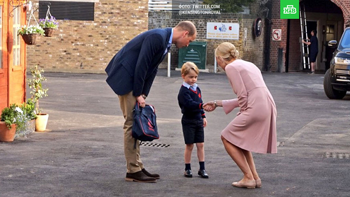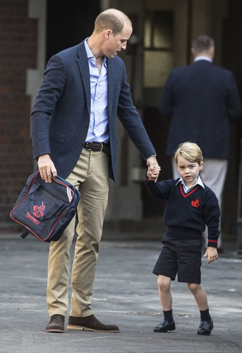 Джордж Кембриджский – третий на очереди наследования британского престола. Родители – Уильям и Кэтрин Кембриджские – не скрывают своей радости, что их малыш в этом году стал учеником. Четырехлетнего Джорджа отдали в подготовительную школу. В первый день учебы Уильям лично провел сына к школьному корпусу, где его встретила директор Элен Хаслем. Отец с сыном приехали в школу на личном авто Range Rover за десять минут до начала урока. На Джордже была школьная форма: джемпер, синяя рубашка и шорты. В руках Уильям нес ранец с нашивкой George Cambridge.